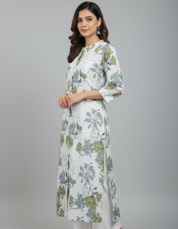 Leaf Blended Printed White Salwar Suit Cotton