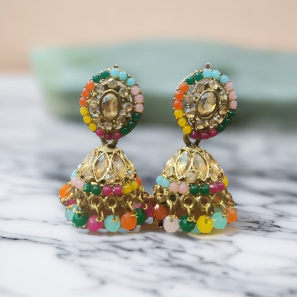 Multicolor Stone Studded & Beaded Jhumka